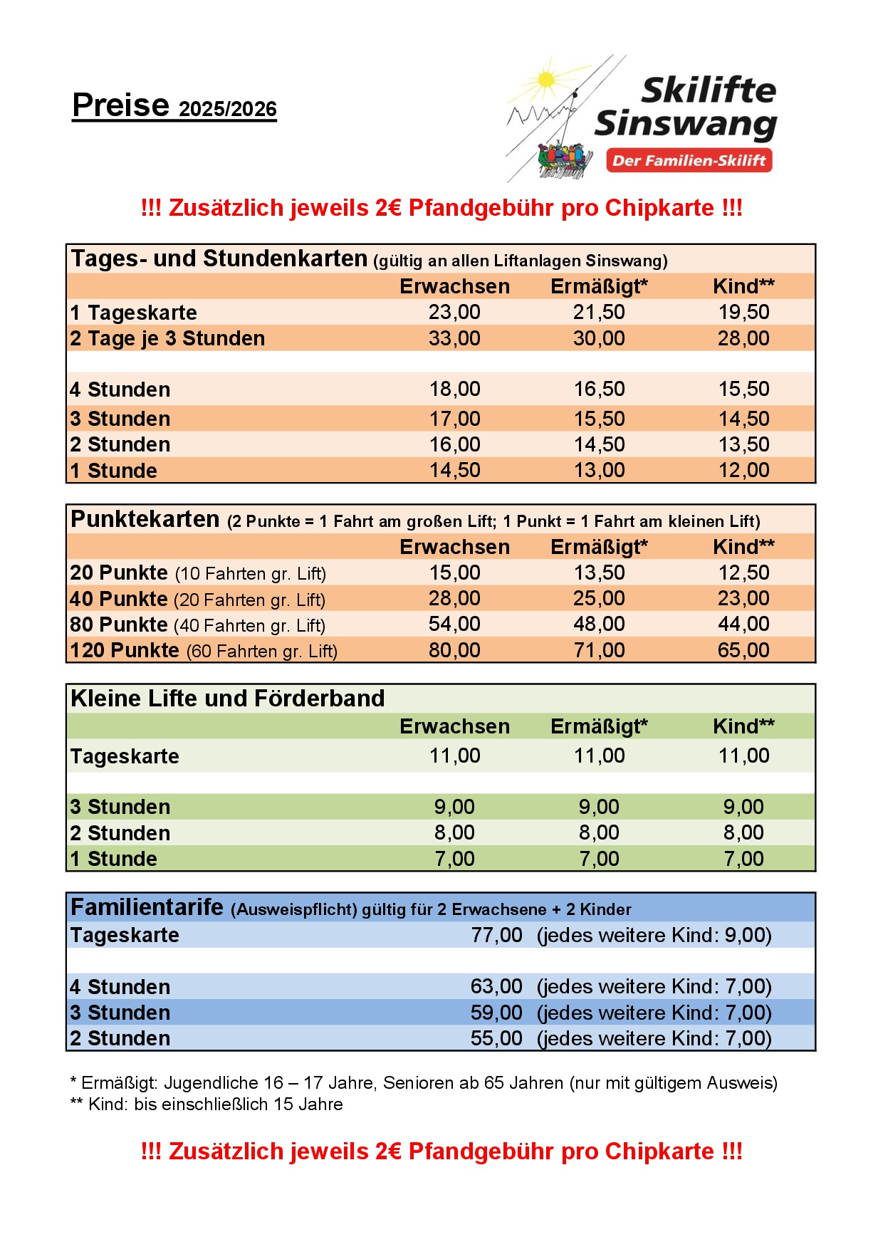 Gerade bei den kleinen Lifte begleiten Eltern ihre Kinder, um ihre ersten Skiversuche zu unterstützen. Deswegen zahlen hier Erwachsene den gleichen Preis, wie Kinder.